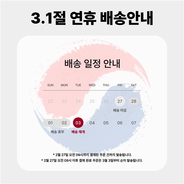 · 예약 발송 상품은 상 품 상세 설명에 안내한 배송관련 정보를 반드시 확인 후 구매해 주세요.