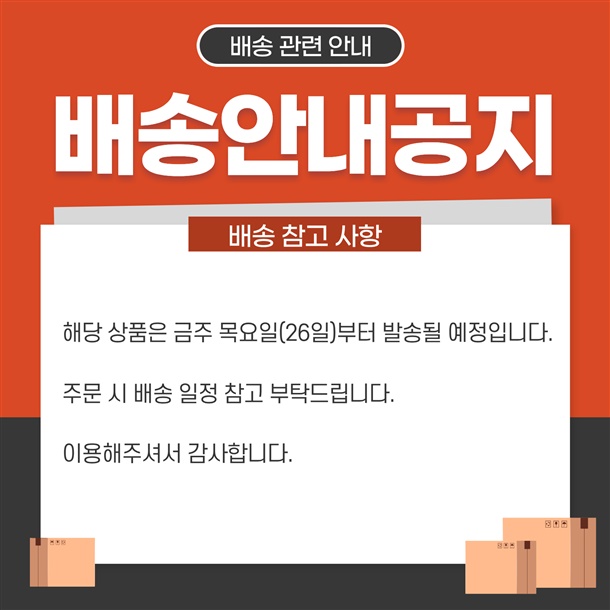 · 상 품은 조기 배송될 수 있으며 배송일 지정은 불가합니다.