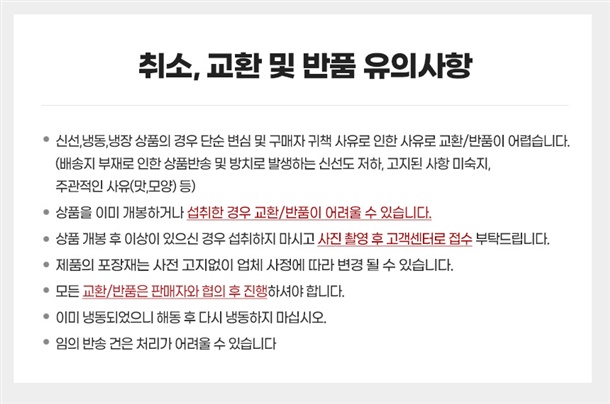 · 일부 상품에 대해서 교환/반품 정책이 위와 상이할 수 있습니다.